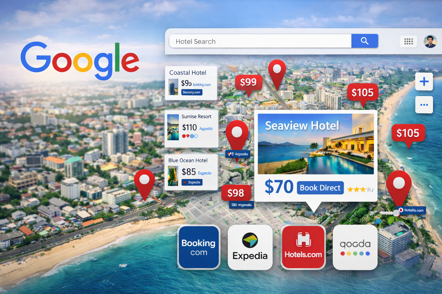 • Sức mạnh tiếp thị & hiển thị vượt trội: Các nền tảng OTA đầu tư mạnh vào SEO, quảng cáo và chiến lược tiếp thị số, giúp khách sạn dễ dàng xuất hiện trên top đầu tìm kiếm của khách hàng.